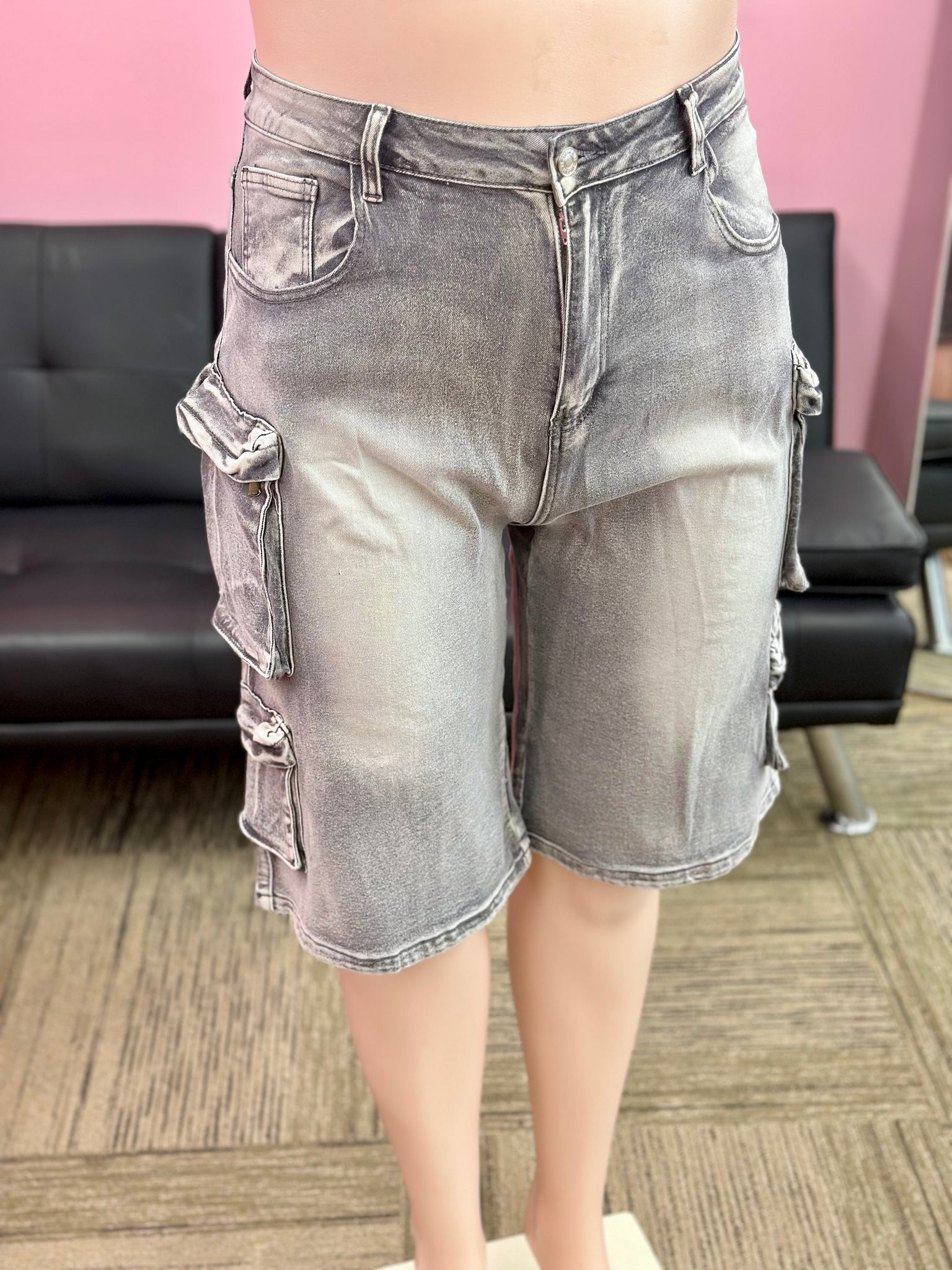 Plus cargo denim above the knee shorts. Stretchy material. Fits true to size
